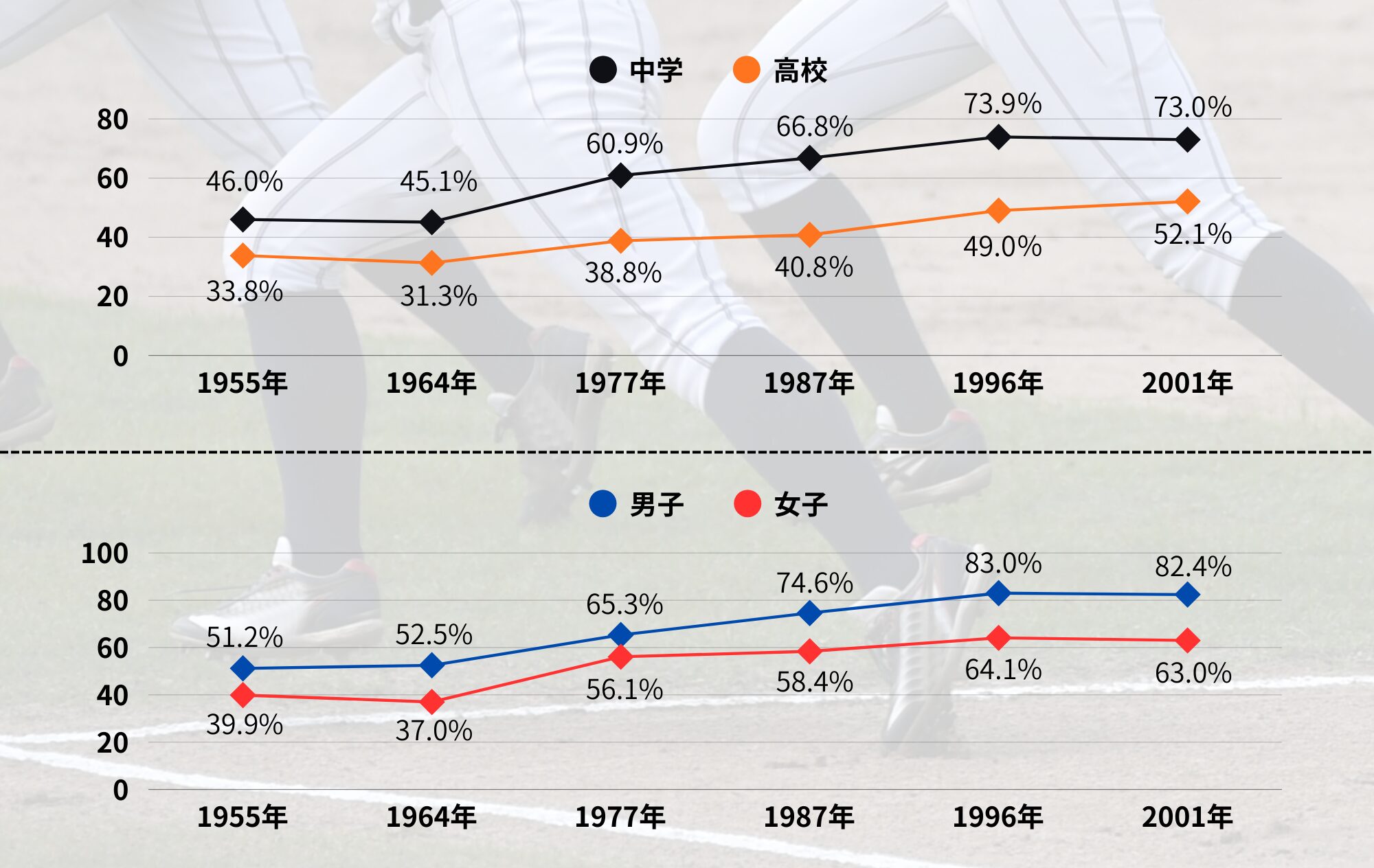 また、野球人気から派生して、スポーツが進学にもかかわるようになっていきます。志望の学校へ進むためには、影響力のある指導者には絶対服従しなければいけないといった心理も子どもたちに生まれてきます。