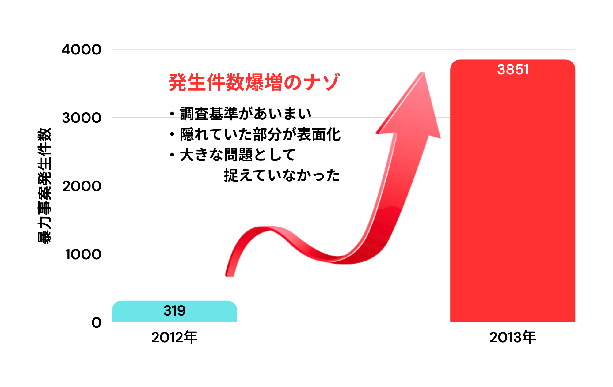 これは、事件があったから暴力が頻発したのではなく、「大きな問題として認識されるようになった」「今まで隠れていた部分が見えるようになってきた」ことを意味します。